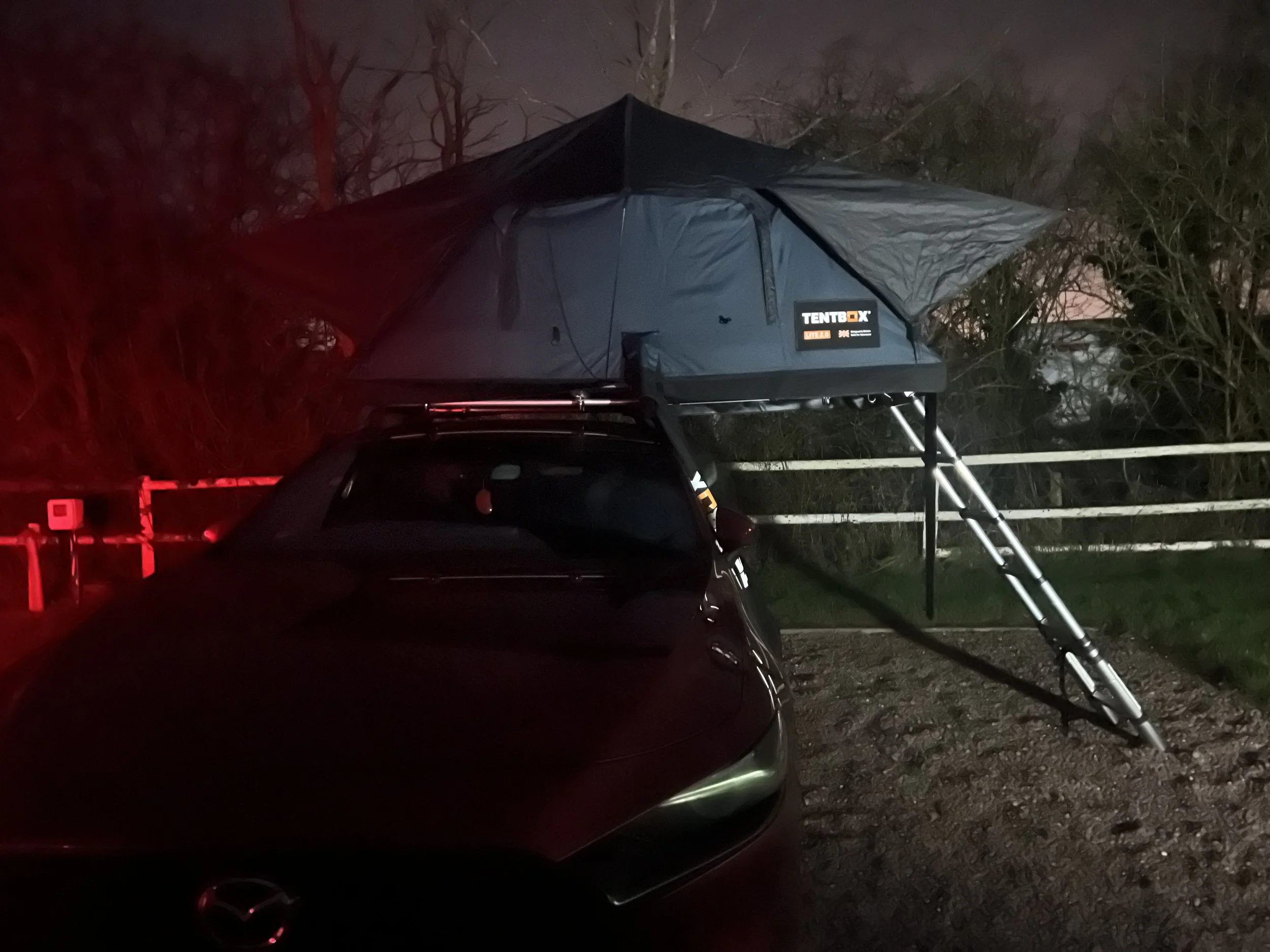 Camping in winter - it’s pitch black even when you pitch up at 6pm! Good job the Tentbox is so easy to put up!